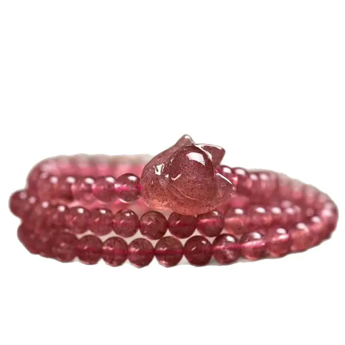 Natural strawberry crystal fox bracelet for women, strawberry stone cute fox multi-strand bracelet, gift to enhance marriage luck.